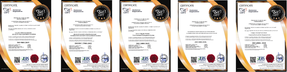 Bu standartlara uygunluk, müşterilerimizin bize duyduğu güveni pekiştirir ve hizmet kalitemizi sürekli ileriye taşımamıza yardımcı olur.