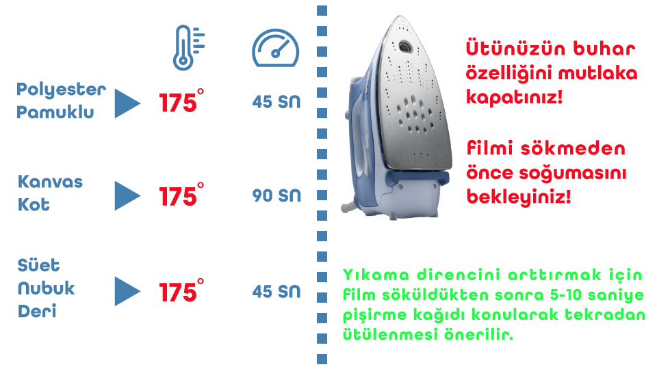 Pi Sembolü, ütü ile uygulanabilen tüm kumaş yüzeylerine uyumlu baskı filmidir.